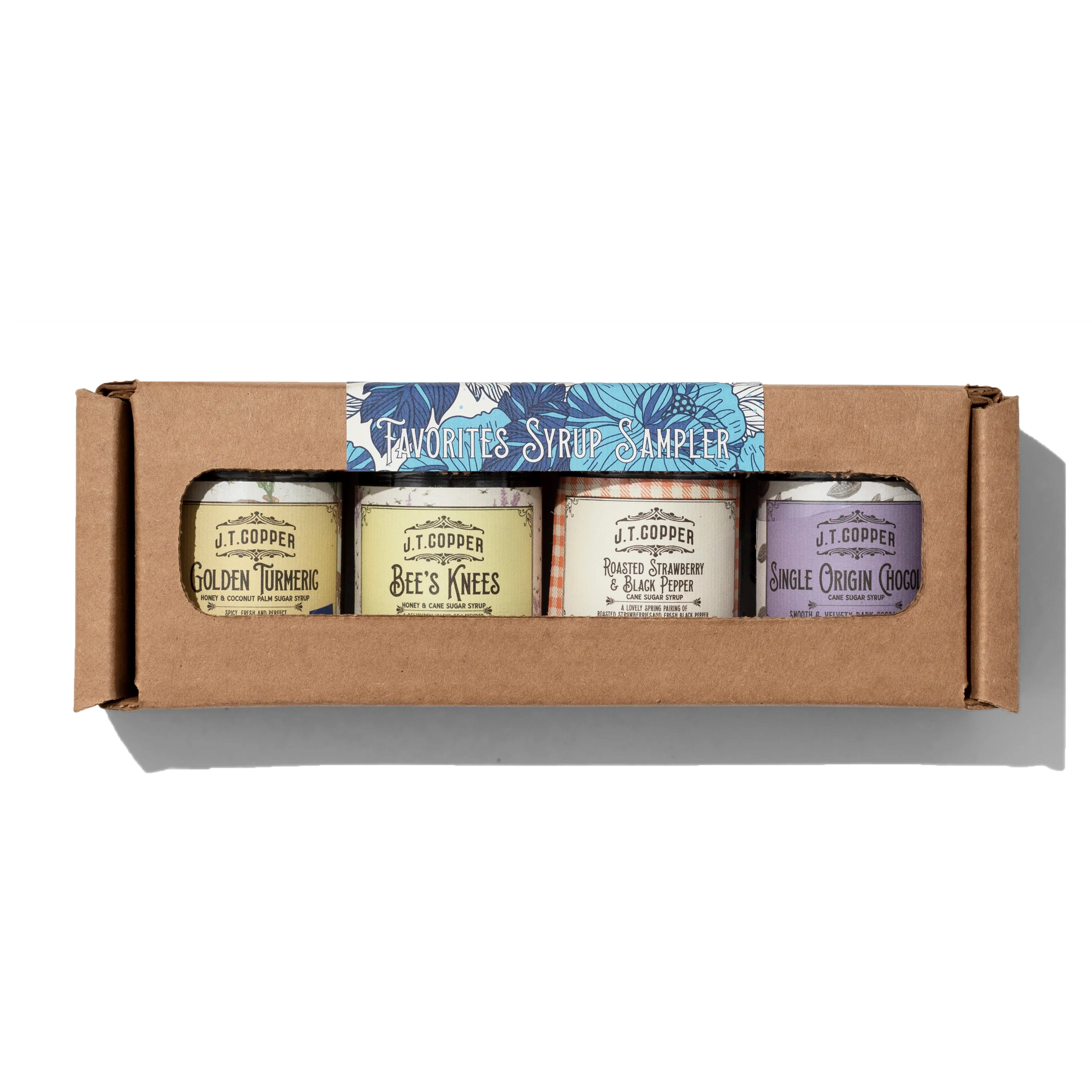 The Favorites sample box contains (four) 2oz jars and comes with a handy recipe card. This collection includes some of our best selling flavors along with two seasonal syrups.